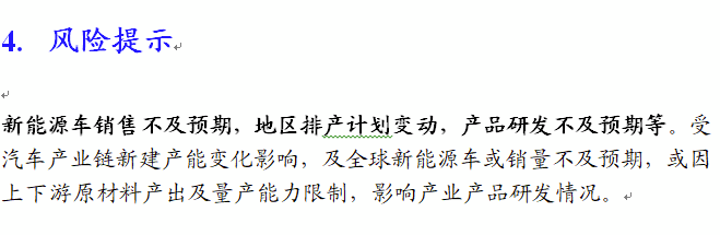 新能源车销售不及预期,排产计划变动,产品研发不及预期等。