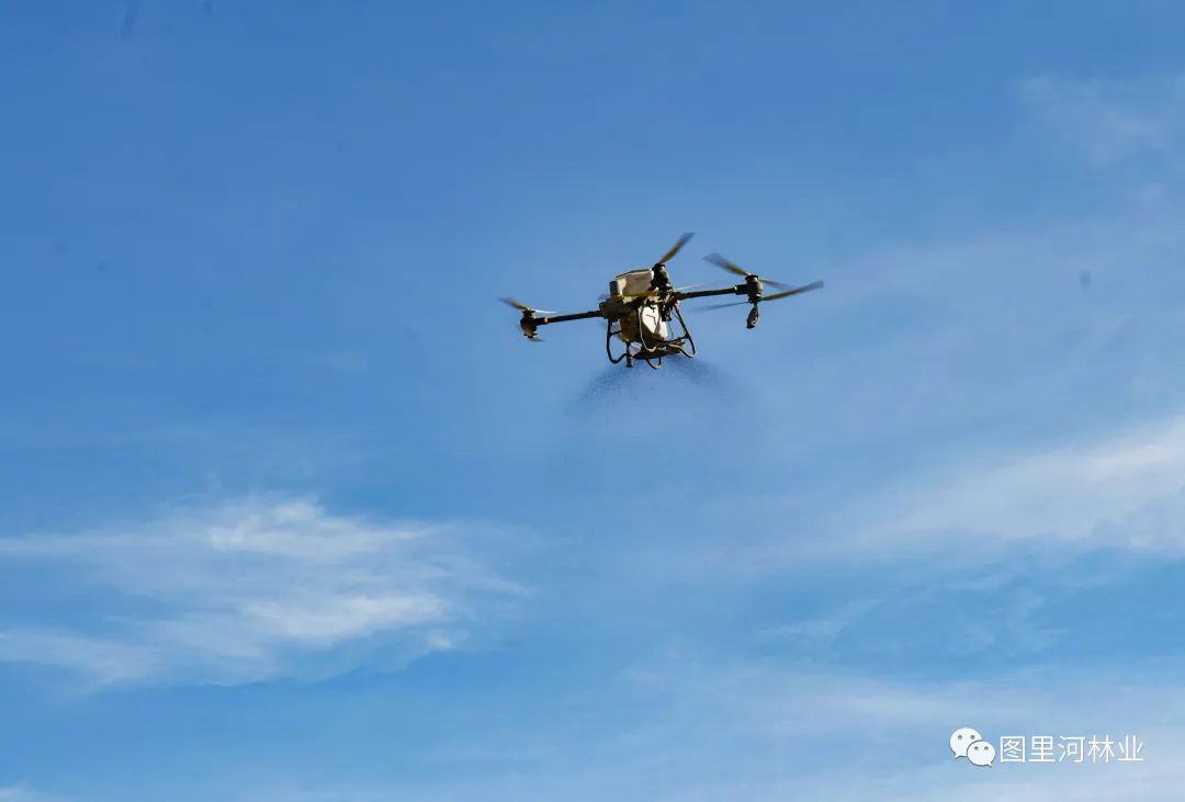 图里河森工公司此次利用农用无人飞机实施飞播金莲花作业,作业区域主要涉及西尼气、库都汉两个生态功能区,共播撒金莲花种子200公斤。
