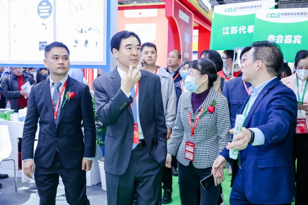 仪式结束后,领导与嘉宾团前往参展企业观摩参展企业品牌、展品及服务,深入了解科技产品促进教育后勤高质量发展。