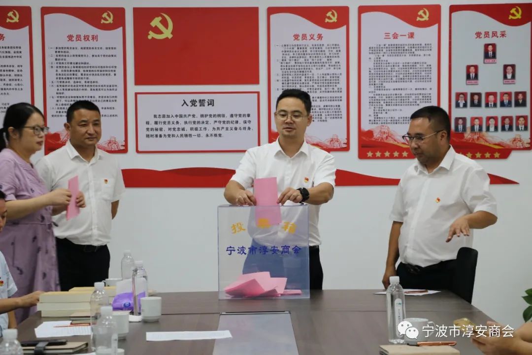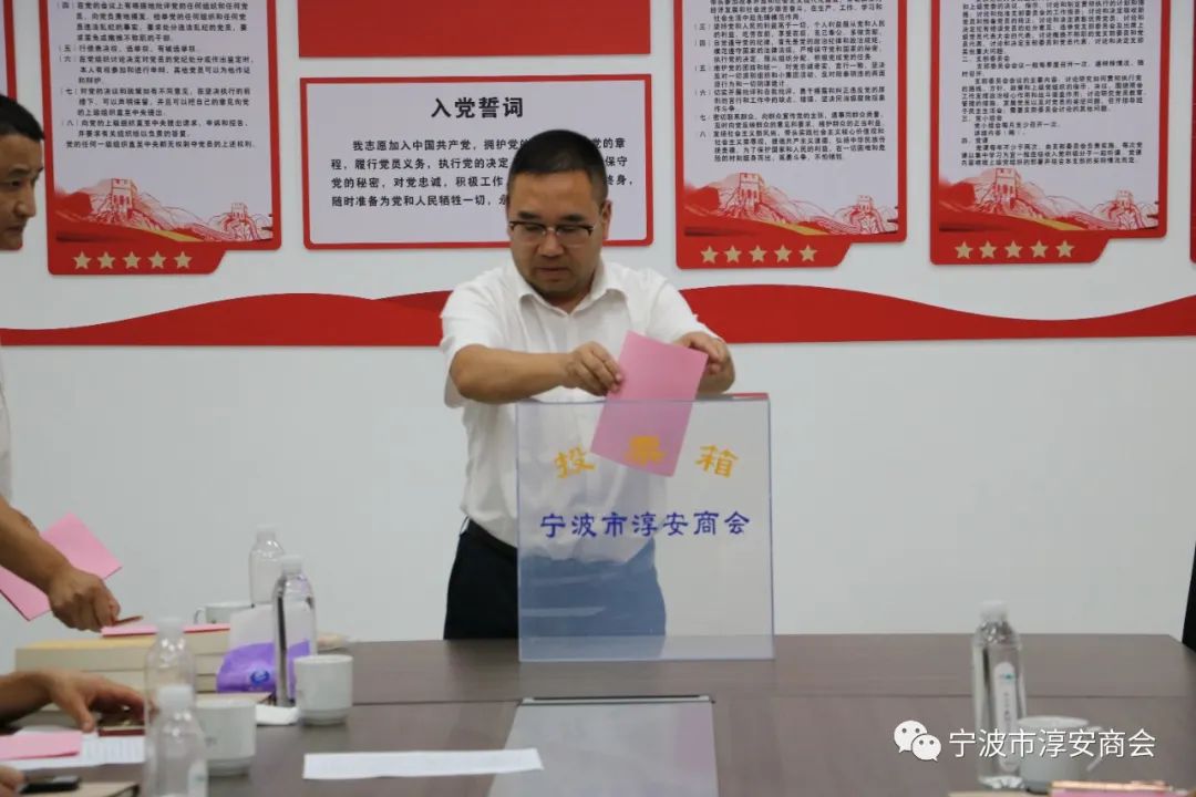 9月11日晚,宁波市淳安商会党支部在商会办公室召开党员大会,会议经充分酝酿讨论并表决通过接收严靖洁同志为中共预备党员。淳安县工商联党总支书记吴晓军到会指导,全体党员参加会议。