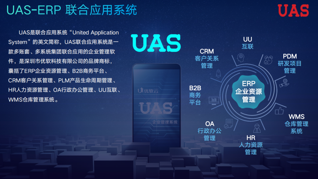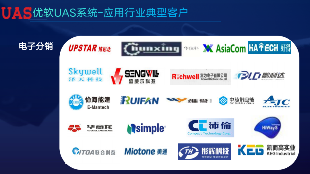 深圳市优软科技有限公司成立于2007年,是由深圳市英唐智能控制股份有限公司(股票代码300131)控股的高新技术企业。优软研制ERP管理软件已有十多年历史,专注服务于电子元器件分销代理及电子制造业的企业。公司拥有一支经验丰富、专业精干的技术团队,由研发技术专家、产品经理、 资深实施顾问等人员打造了“以经营管控为核心思想”的UAS联合应用系统。以打造ERP+和MES+为基础应用,以自动化、可视化、智能化助力经营管理和生产现场的高效运作的企业信息协作平台。公司倡导“以技术为本,以服务制胜”的经营理念和诚实稳健的经营作风,赢得客户广泛的信任和支持。来源于企业