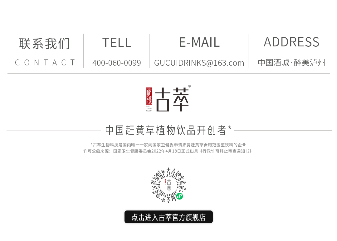 古萃承载着赤水河左岸深厚的文化底蕴,未来,企业将坚持以古蔺赶黄草为载体,致力推动产业链朝着“扩大生产供应、拓宽精深加工、提升品牌价值”方向高质量发展,不断提升产品品质,为消费者打造全新的健康生活新方式!
