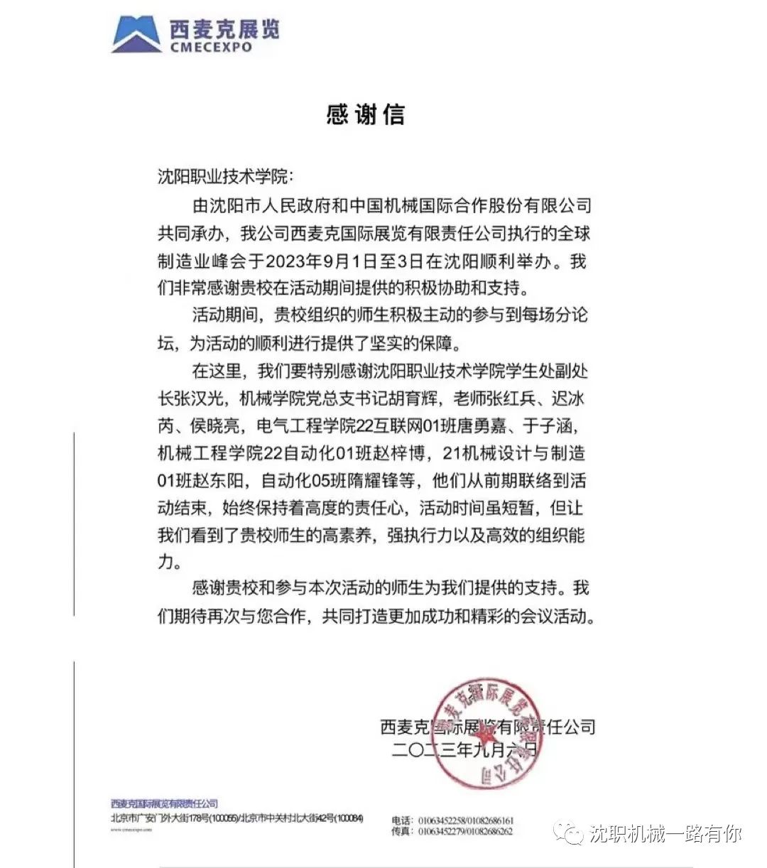 2023年9月1日,第21届中国国际装备制造业博览会,在沈阳国际展览中心隆重开幕!本届中国制博会展览面积达11万平方米,规划有装备制造业综合展区、工业母机、工业自动化/机器人/仪器仪表、模具及铸造热加工、新材料、功能部件、工业互联网/未来产业等11大展区1042家国内外知名企业集中亮相。学院受邀组织老师和学生参加。