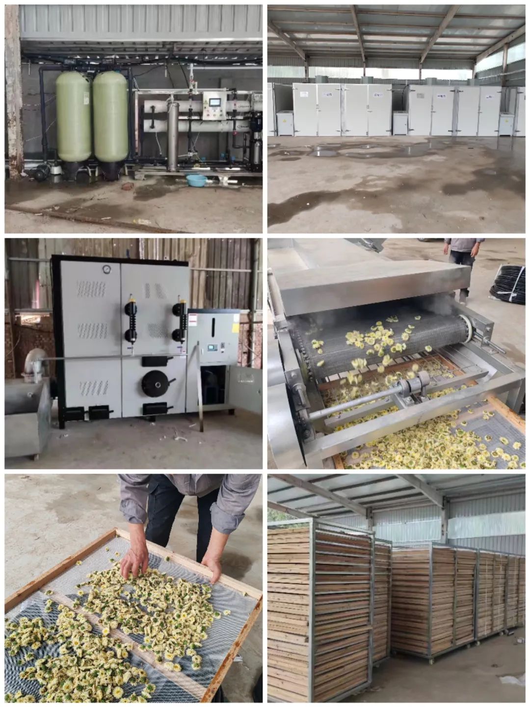菊花采摘后,为保持花中的有效成分,工人及时将鲜菊花运送到加工车间进行烘干降温。走进烘干车间,工人正将刚采摘下来的菊花摆放在晾干架上,推进烘干房进行烘干。在智能烘干机的一声声轰鸣中,蔡小庄村种植采摘的第一批菊花开始烘干作业。