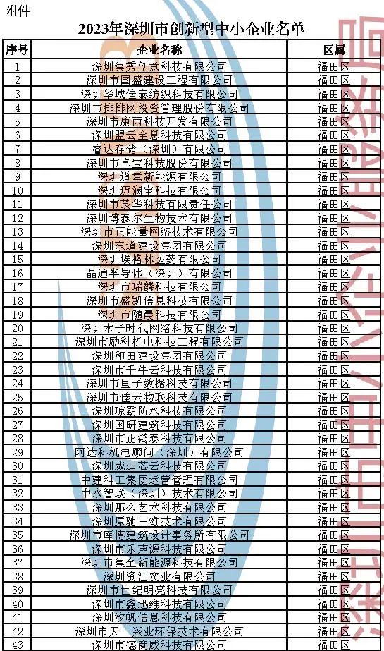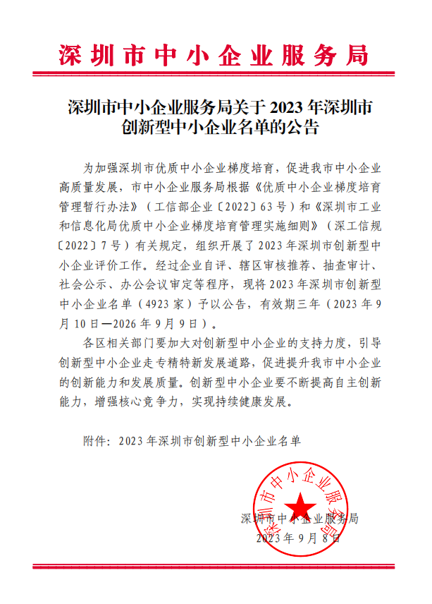 附件:2023年深圳市创新型中小企业名单