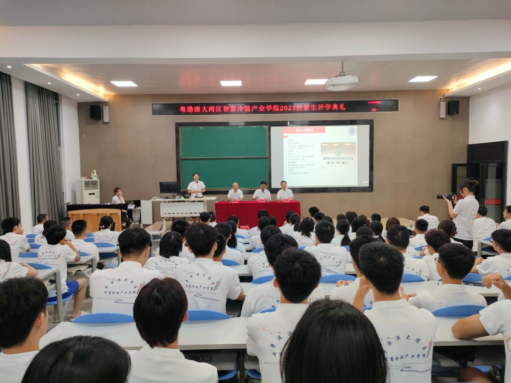 2023年9月11日晚7点,粤港澳大湾区智慧冷链产业学院2023级新生开学典礼暨院长书记开学第一课在三水校区第一实验楼C204多媒体教室隆重举行。广州工商学院校长兼产业学院院长王日华教授、产业学院执行院长谢如鹤教授,党支部书记、副院长黄鹏和学院教职工参加了典礼,会议由学工办辅导员蔺然老师主持。