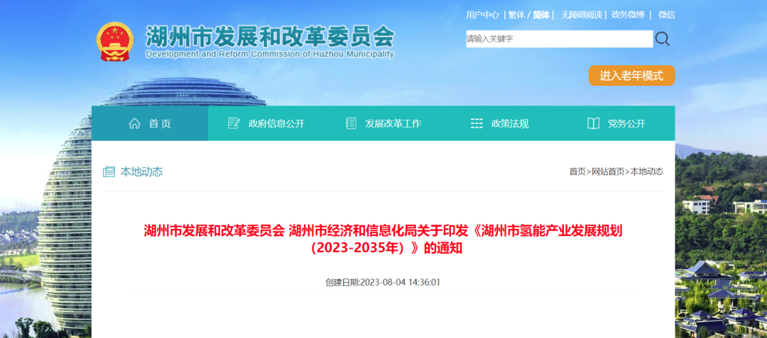 8月4日,浙江湖州市发改委印发《湖州市氢能产业发展规划(2023-2035年)》。文件明确发展氢燃料电池制造、制储运加装备制造、氢能生产性服务产业。