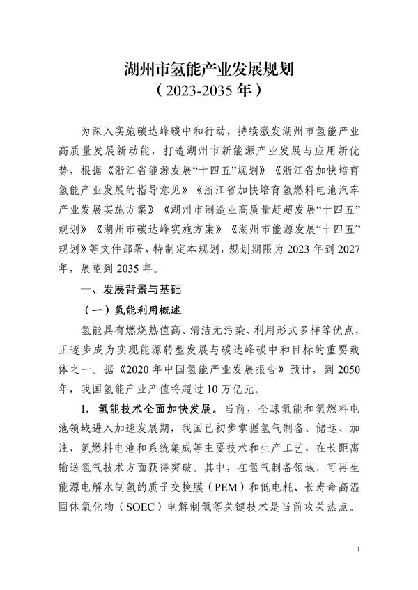 建设一批可再生能源制氢项目!湖州市氢能产业发展规划(2023-2035年)印发!