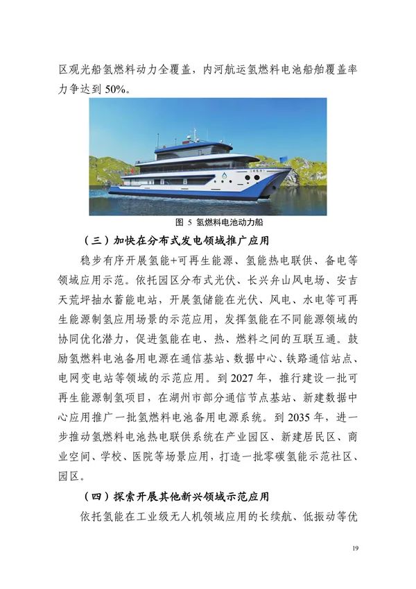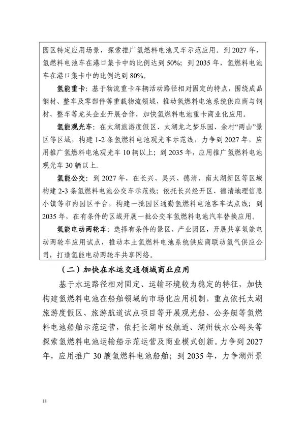 力争到2027年,应用推广30艘氢燃料电池船舶;到2035年,力争湖州景区观光船氢燃料动力全覆盖,内河航运氢燃料电池船舶覆盖率力争达到50%。