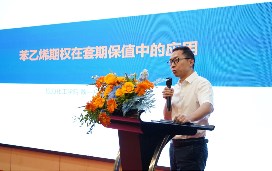 恒力化工学院副院长魏一凡围绕苯乙烯期权在套期保值中的应用发表了自己的观点。他指出,期货的价格是估值,并不完全由供需矛盾解决,期货和现货的逻辑不太一样,期货的核心是交易预期。我们应当从第二层来看待问题,价格由供需矛盾和估值决定,估值的影响因素在于成本抬升或者坍塌,货币放水与收缩。魏老师还介绍了目前他们研究的几个模型,分别是数学模型、商品时钟模型、库存周期模型、估值+驱动力模型、供需矛盾模型,给了在场嘉宾很大的启发。