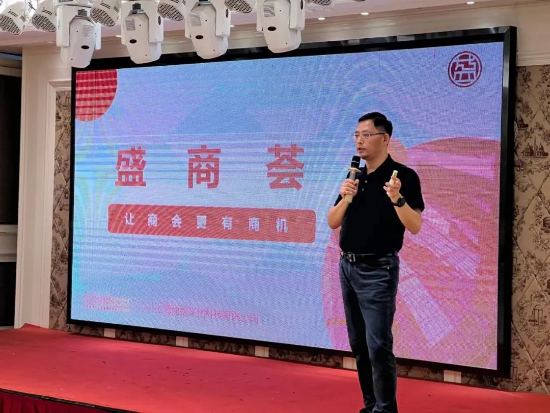 接下来是黄贤明会长为大家分享商会服务平台“盛商荟”的构建情况,包括平台的搭建背景、当前进展情况及未来设想。