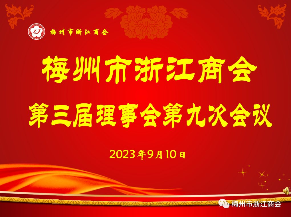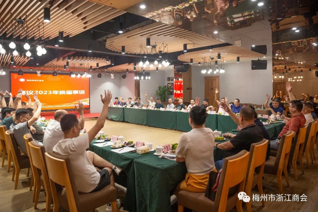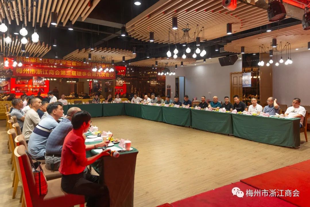 2023年9月10日下午,梅州市浙江商会第三届理事会九次会议在联邦酒店三楼宴会厅举行。会议围绕筹备2023年换届大会、中秋活动等有关事宜进行研究讨论。商会会长黄瑞招,执行会长兼秘书长章春美,执行会长林贤周、黄银丰、金军助、严惠芬,监事长陈捍文,常务副会长兼党支部书记陶仁飞,常务副会长兼副监事长程启夫、常务副会长兼五华分会会长李叔兵、常务副会长杨克平、王杰豪等36人参加会议。商会副秘书长徐小美主持会议。