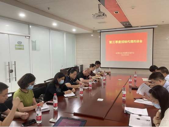 为持续推进公共资源交易领域诚信建设,进一步增强招标代理机构服务意识,提升业务水平,进一步从严从细规范交易行为,近日,宿豫区公共资源交易中心组织召开第三季度招标代理约谈会。