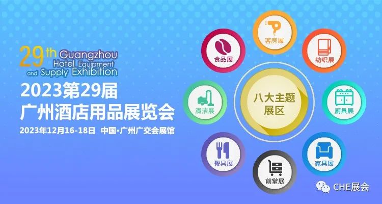 2023第二十九届广州酒店用品展览会是由广东佛兴英耀展览服务有限公司主办,于2023年12月16-18日在中国进出口商品交易会琶洲展馆(广交会展馆)举行。本届展览会预计展览面积30多万平方米,参展企业4000多家,展品范围包括陶瓷餐具、玻璃器皿、厨房设备、清洁设备、酒店家具、客房用品、食品饮料等酒店用品门类的上下游全产业链,本届展览会是国内外酒店用品行业的一个盛会。