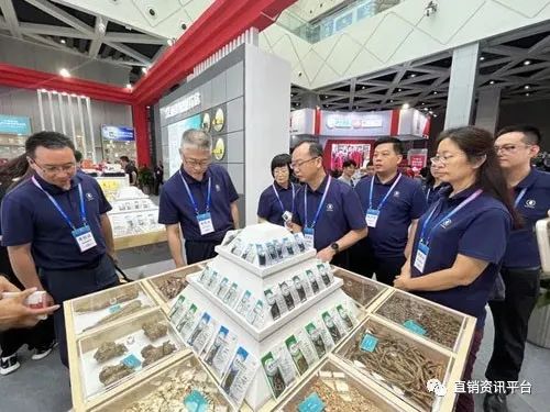 广药集团党委副书记、副董事长、总经理杨军(左二)参观康美药业展位