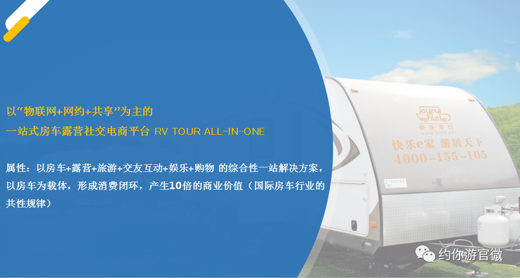 未来,集团快乐车行将以旗下一站式房车旅游社交电商平台——“约你游APP”为入口,一键导入/导出资源、产品、客流、资金流,打造5G时代的房旅新共享模式,并以品牌化、标准化、连锁化、国际化的发展战略,实现智慧文旅的多业态联动,打造高性价比、高抗风险能力及具备强大引流能力的文旅产品,实现产品的最大溢价功效,助推国内房车旅游高质量发展!为房车露营行业注入了更加强劲的竞争力与生命力。