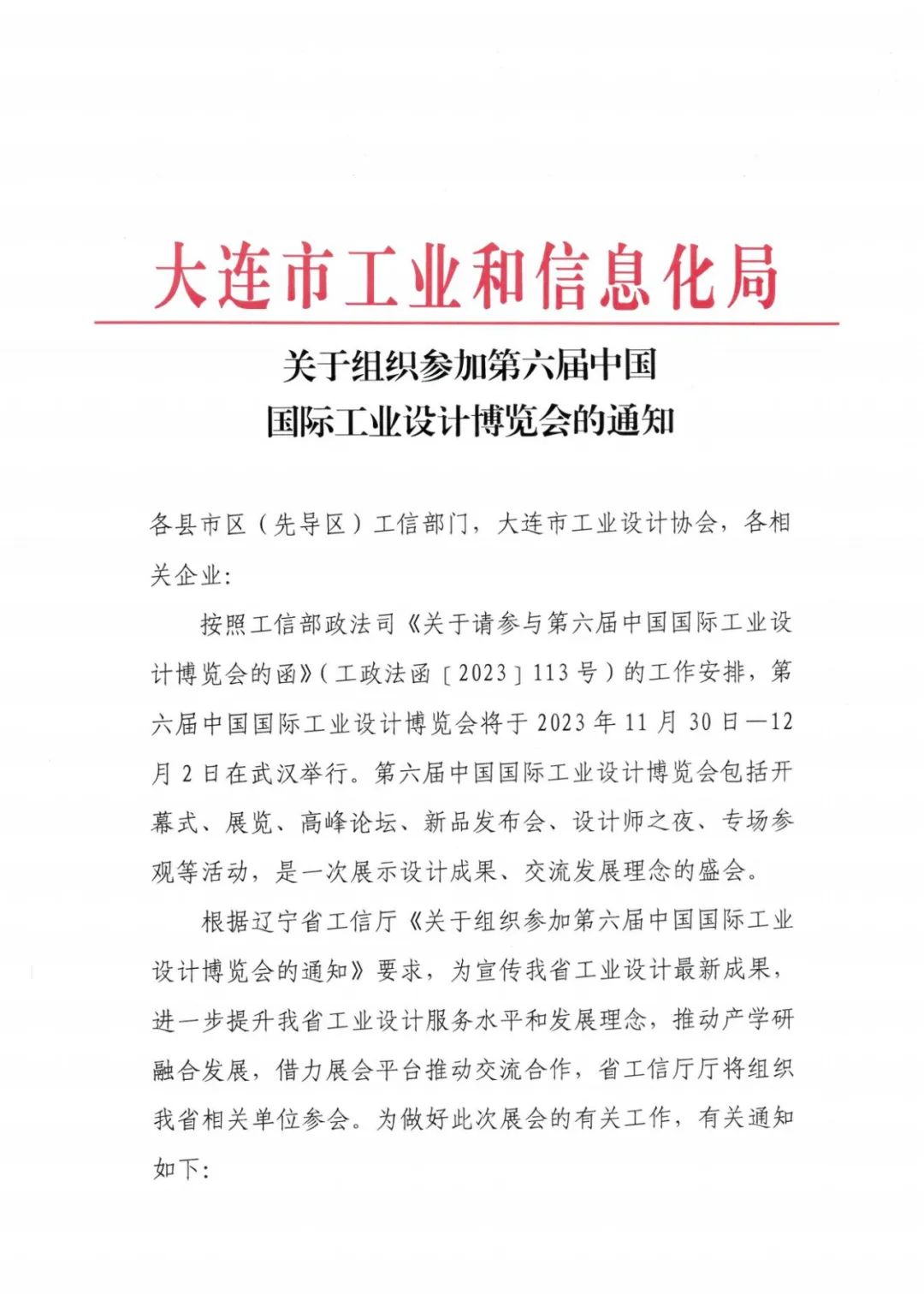 关于组织参加第六届中国国际工业设计博览会的通知