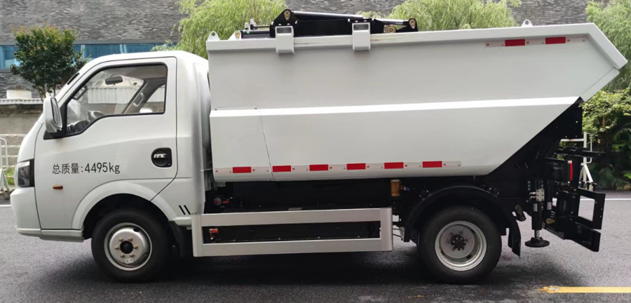 :该车型具有垃圾收集、压缩、转运等功能,翻桶机构能同时兼顾120L,240L塑料桶的上料需求。整车采用模块化的设计理念,通过优化布局设计,在满足所有功能前提下,实现产品尺寸更小,在城市狭窄道路行驶时优势明显。