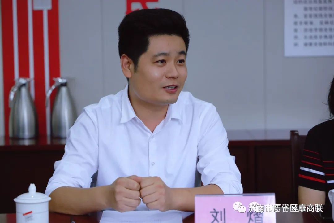 9月12日,历下区政协副主席、区工商联主席刘军,历下区统战部副部长、区工商联党组书记纪宏伟一行到山东省健康商会交流座谈。