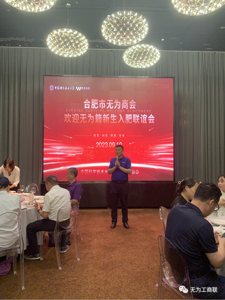 2023年9月10日,合肥市无为商会在同庆楼花园酒店隆重举办欢迎无为籍新生入肥联谊会。此次联谊会旨在为本年度考入合肥市高校的无为籍新生提供一个互相认识、交流的平台。活动得到了商会领导,无为籍在肥退休老师,中国科学技术大学、安徽大学、合肥工业大学、安徽医科大学、安徽建筑工程大学校友、无为中学校友、无为一中校友会和其他诸多无为籍在肥优秀人士的热情参与和支持,现场气氛热烈,互动频繁,取得了圆满成功。商会常务副会长江家舵,监事长胡韶山、副会长谢业报、卫修树、副会长兼秘书长胡啸涛,副秘书长周晓春、陈艳艳等参加此次联谊会。