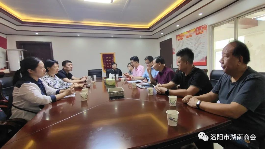 【商会活动】为贯彻洛阳市委十二届四次全会精神,助推企业高质量发展。9月11日上午,洛阳市委统战部副部长、工商联党组书记郭红伟一行三人,深入洛阳市湖南商会考察调研,座谈交流。我会会长肖建勋,执行会长易继国,党支部书记胡勇强,副会长吴希君,副会长黄修祝,副会长李红卫及优秀理事骆卉,秘书长李安乐等陪同调研。