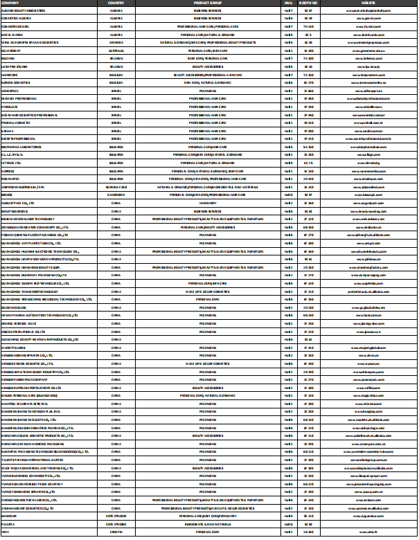 美容美发: 人员护理产品,香水和除臭剂,专业美发产品,设备和家具,专业美容院,水疗和健康产品和设备,彩妆,天然化妆品,皮肤化妆品,美容配件,指甲护理和美甲,清洁和卫生用品,清真化妆品,原料配料,包装和机械,自有品牌