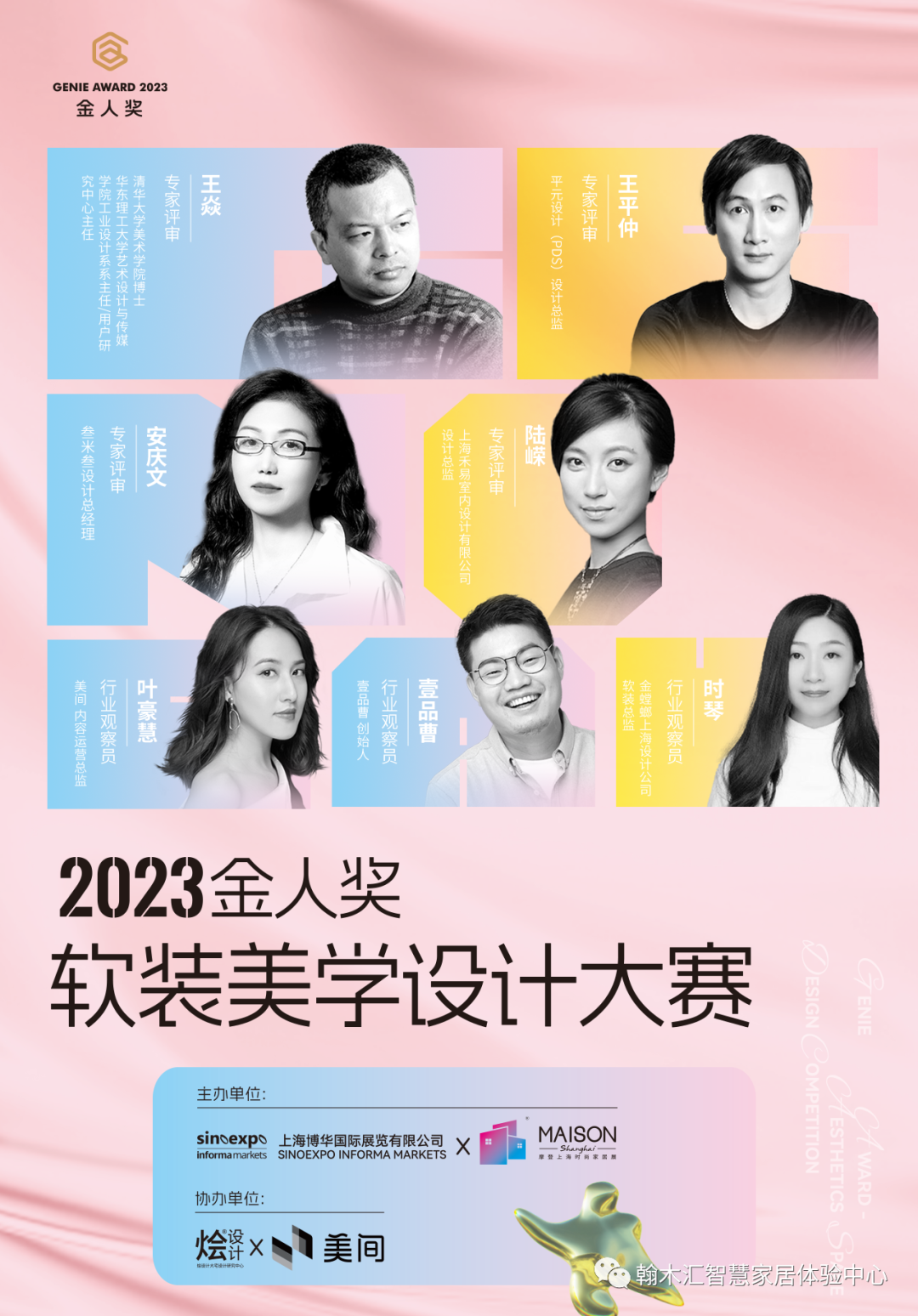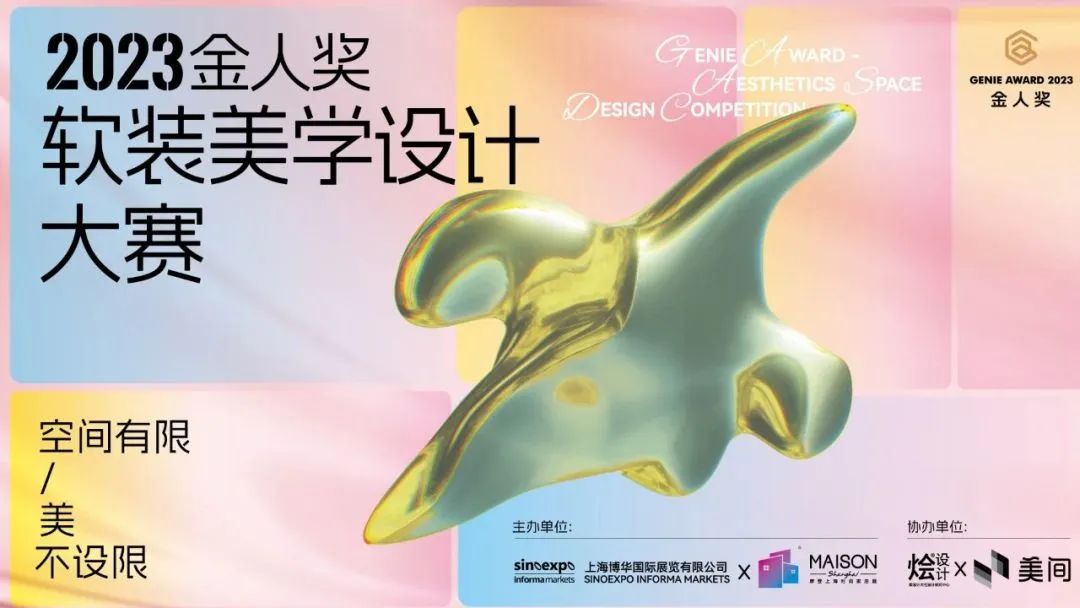 空间有限,美不设限!2023金人奖-软装美学设计大赛开启软装美学巅峰,联合烩设计大宅设计研究中心和美间云设计平台共同发起,聚焦软装美学,打破室内设计界限,共设立潮玩空间奖、艺术陈设奖、空间叙事奖、空间元素演绎奖、色彩搭配奖、AIGC设计奖、网络人气奖7大奖项,由背景多元、专业能力过硬的评委评奖,挖掘软装设计⾏业的优秀⼒量和新锐人才!
