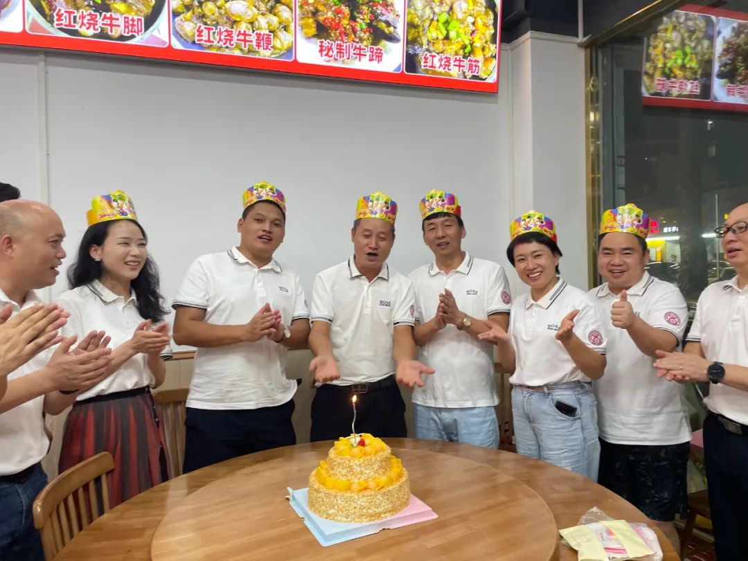会长李伟带领大家共同为九月份过生日的会员切蛋糕、齐唱生日歌、生日祝福。