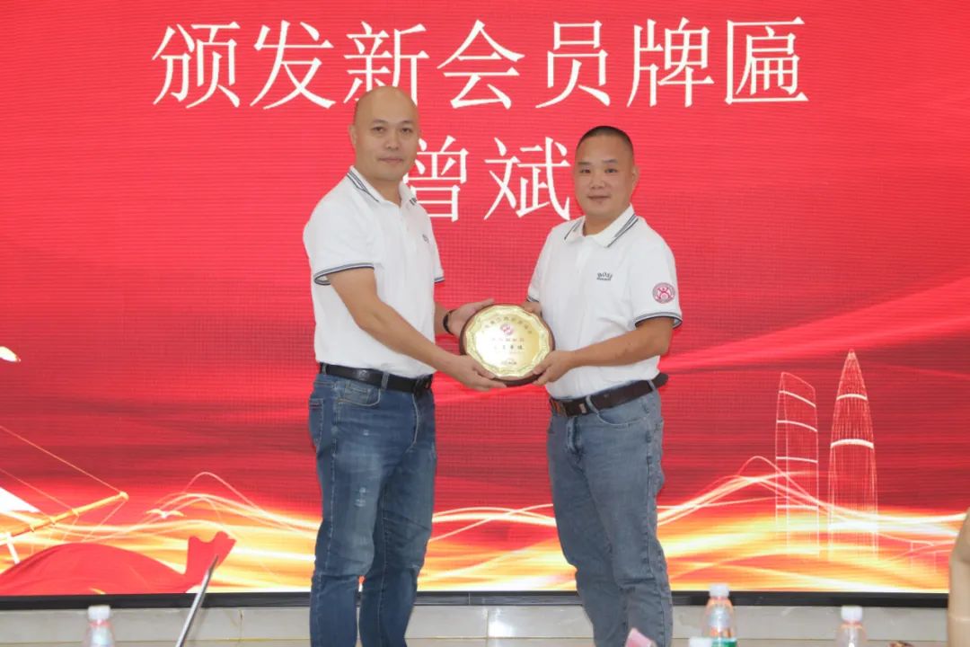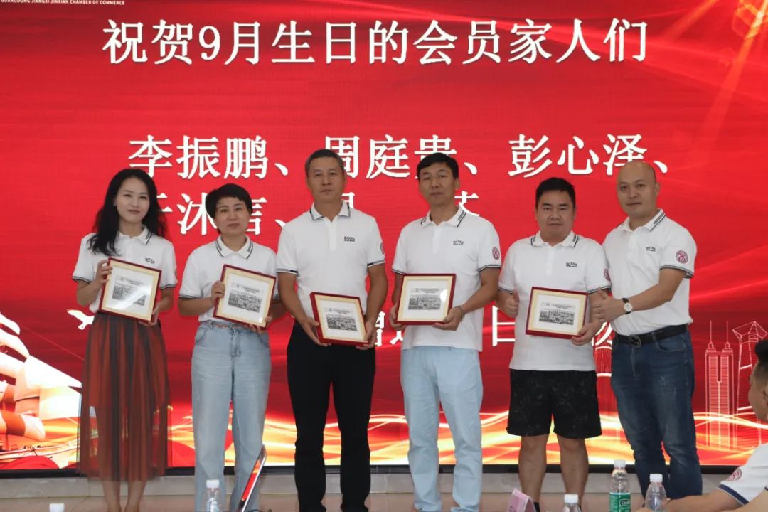 会长李伟为九月份过生日的会员颁发生日礼物。