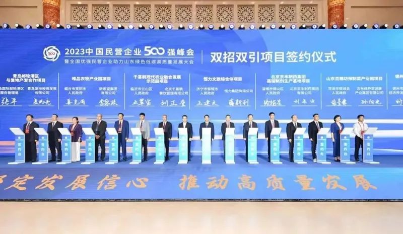 会议举行了民营企业双招双引项目签约仪式。据悉,今年以来,山东省围绕民营企业500强开展各类招商活动83场,招引省外民营企业500强134家、投资项目123个,总投资额达2698.33亿元,现场签约项目24个。