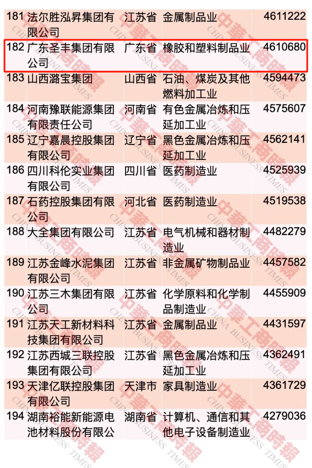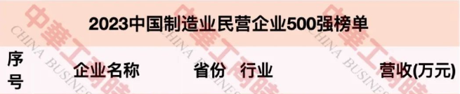 广东圣丰集团荣登“2023中国制造业民营企业500强182位”