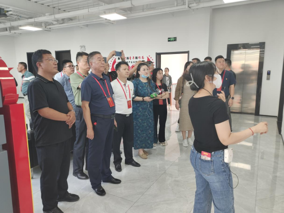 观摩团依次参观了青商会党建文化墙、会议室等党建工作阵地及会员企业孵化基地建设情况,详细了解青商会党建工作现状及人员配备、党员发展、活动开展情况并观看了青商会宣传片。