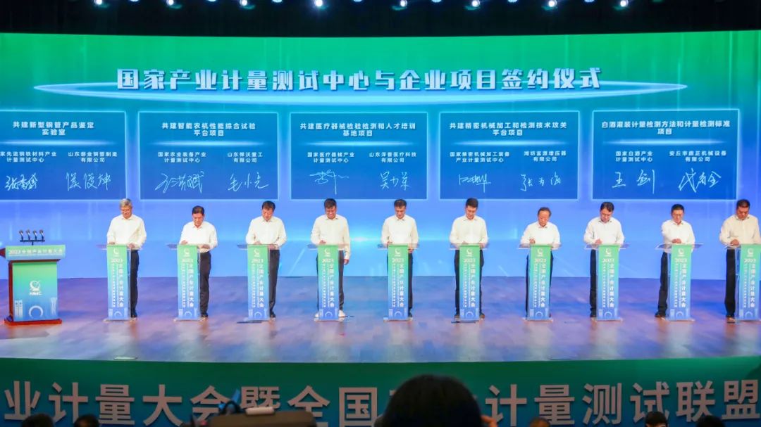 大会上,中国科学院房建成院士、中国工程院谭久彬院士、中国社会科学院经济研究所黄群慧所长、中国计量科学研究院方向院长分别作主题报告。会上,还发布了包括首批118项优秀成果的产业计量成果库,集中展现产业计量工作成果,加强产业计量成果共享和应用。在中国计量科学研究院倡导下,各国家产业计量测试中心共同发起成立全国产业计量测试联盟并发布计量支撑产业高质量发展潍坊倡议书;国家航空器产业计量测试中心等10个国家产业计量测试中心分别与山东高创建设投资集团有限公司等10家潍坊市企业现场签订合作协议,为促进经济复苏贡献计量力量。大会期间还举行了4个分会议,分别交流研讨计量支撑装备制造产业高质量发展、计量支撑新能源新材料产业创新发展、计量支撑传统产业转型升级、计量支撑水利高质量发展。