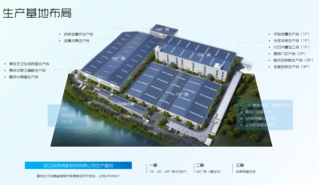 科筑装配生产基地,建筑面积56000平方米、20余条生产线,产品涵盖10大装配体系20大部品系列,为科筑装配提供强有力的供应链保障。