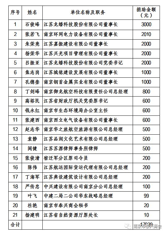 特此通报并再次向参与本次捐助活动的所有会员和在宁泰兴籍爱心人士们表示衷心的感谢和崇高的敬意。