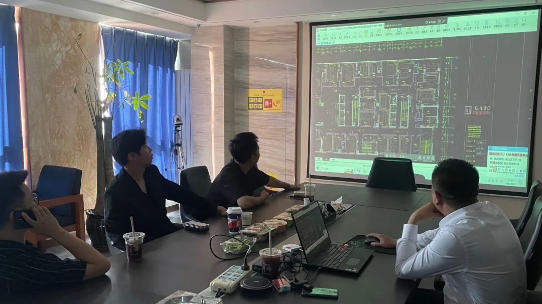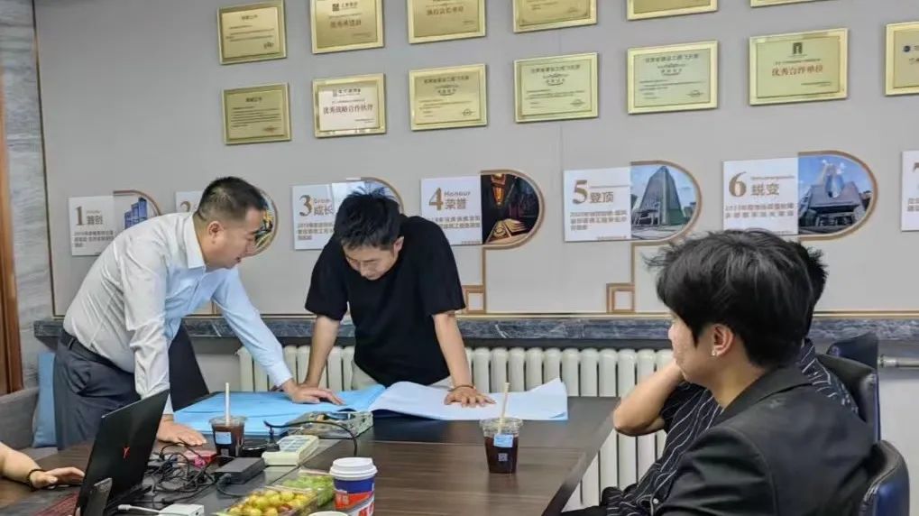 在合作讨论会上,鸿鹄装饰总经理杨军总就合作项目施工工艺进行细化探讨,深入工作重心,事无巨细、精益求精。
