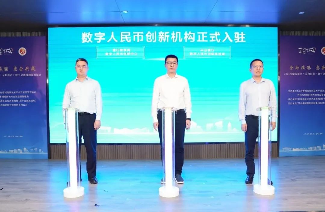 活动现场,举行了数字人民币创新机构入驻仪式,建行物联网数字人民币创新中心、兴业银行数字人民币创新实验室正式入驻相城高新区,将进一步助推地区数字金融产业高质量发展。
