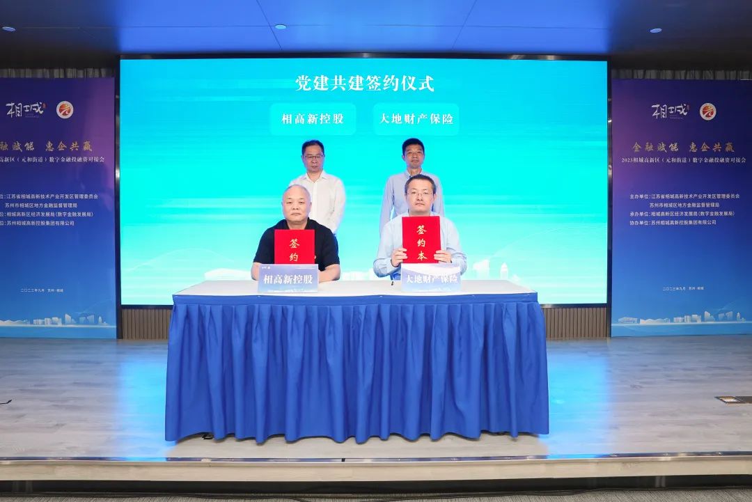 苏州相城高新控股集团有限公司与大地财产保险公司在活动现场举办党建共建签约仪式。自此,构建“资源共享、优势互补、相互促进、共同提升”的党建工作新局面,进一步深化务实合作,以党建牵线搭台、金融服务跟进,合力成为高质量金融服务的提供者、推动数字金融稳健发展的主力军。