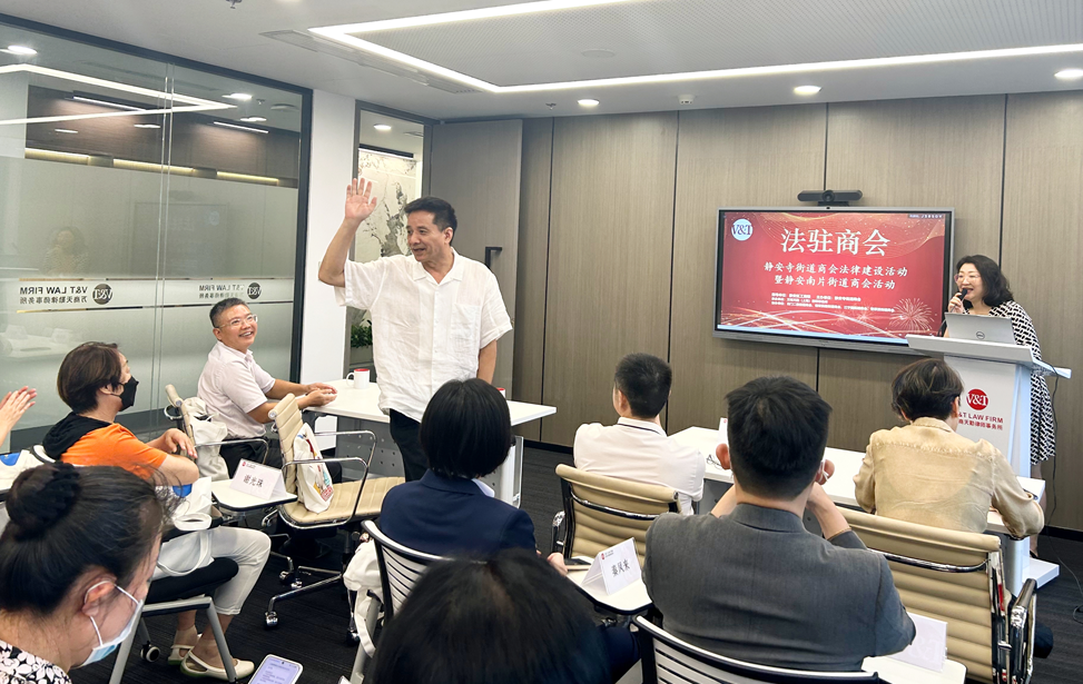 2023年9月12日,为进一步完善商会工作的法制化、规范化建设,筑牢法律意识,在区工商联的大力支持下,静安寺街道商会邀请南京西路街道商会、江宁路街道商会、石门二路街道商会以及曹家渡街道商会于万商天勤上海办公室共同开展“法驻商会”——静安寺街道商会法律建设活动。