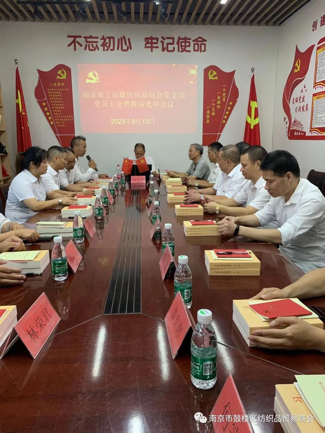 2023年9月13日下午五点,南京市工商联纺织品商会党支部大会暨换届选举会议在龙湖紫都城商会会议室成功召开。会议由商会会长、党支部副书记叶文聪主持。