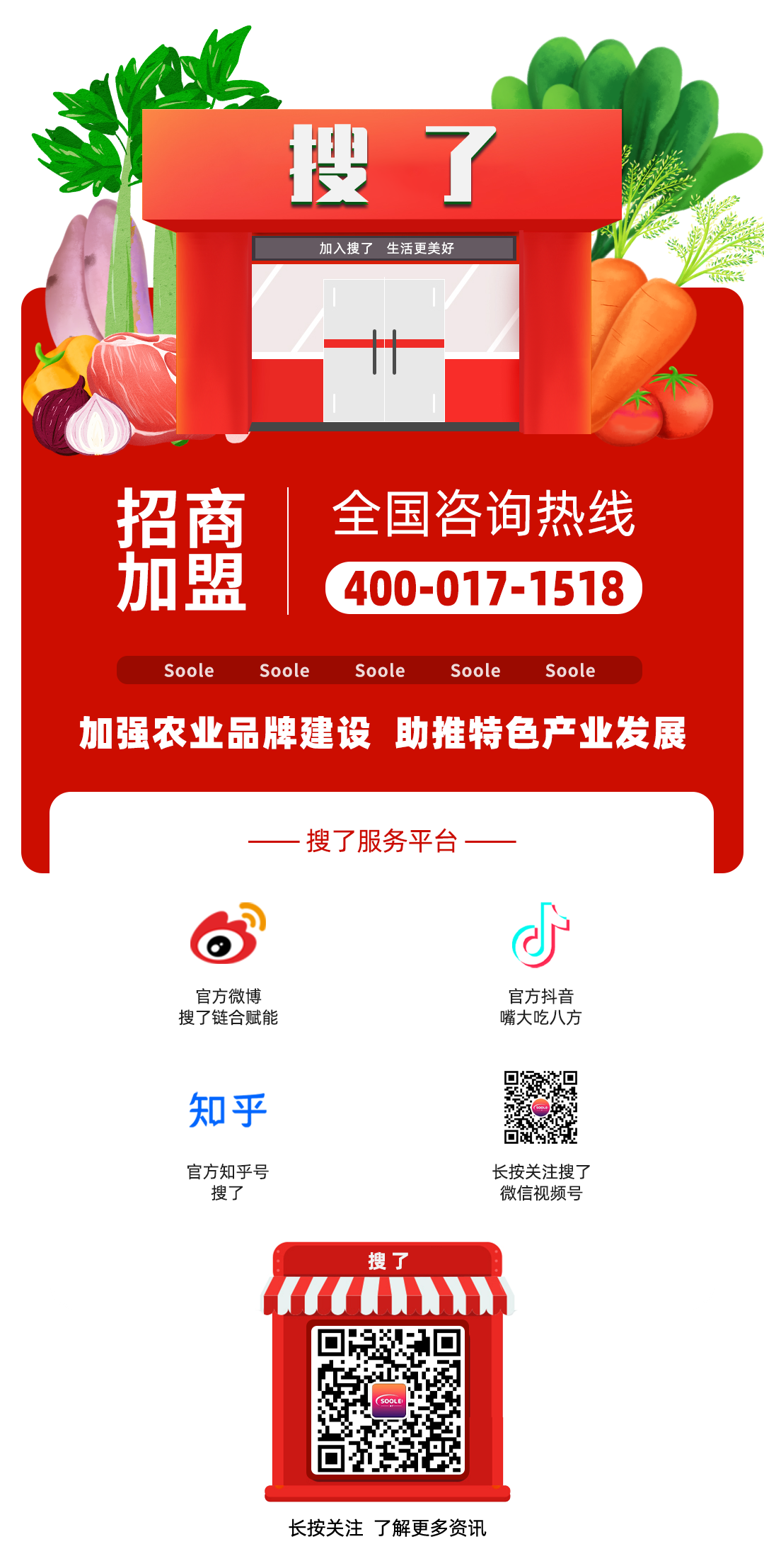 市场主体是经济的力量载体,是实体经济运行的基础。近年来,搜了集团一直向着服务更优、效率更高、速度更快、产业更融合的方向发展,形成了服务体系“顶天立地”、农产品专卖店“铺天盖地”、农特优实体企业 “枝繁叶茂”的发展格局。