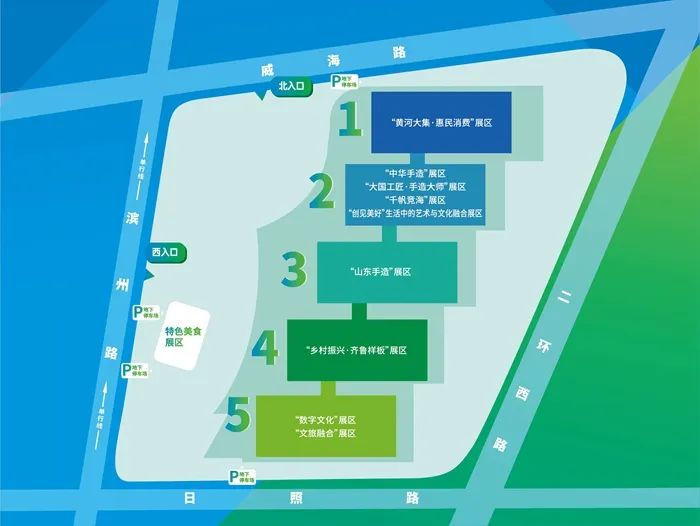 此次为了拓宽文化惠民的广度,展会在济南市各区县设立了众多分会场,包含山东手造展示体验中心、印象济南·泉世界、山东书城、胶济铁路博物馆、579百工集“粉我派对pink市集”、阡陌书店·579百工集店、环联1904火车夜市、融汇济南老商埠、欧亚大观园、九如山休闲旅游度假区、华侨城欢乐荟、崮乡源文化旅游产业基地、沃泰龙山瓷文化创意园、平阴县农商智慧城、国家文化出口基地、济阳华百电影文化广场等。