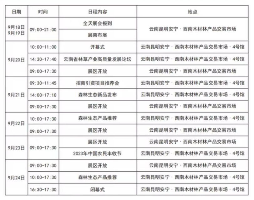 据了解,木竹制品展区主要展示实木整装定制家具、木塑复合材料、人造板、园林古建、防腐木、楼梯、木制工艺品、根雕等;花卉苗木展区主要展示花卉、绿植、苗木、盆景等;林草科技及装备展区将展出森林灭火无人机、森林器械装备、林草机械设备、野生菌科技、互联网服务、木工机械、园林养护机械、植物病虫防治、农用物资等产品;森林康养旅游展区将展示药材、森林康养、植物茶饮、植物护肤、玫瑰花制品等产品;森林生态食品展区将展示野生菌干制品及其深加工产品、元宝枫籽油、牛油果、苹果、坚果、茶叶、咖啡等云南高原特色产品……