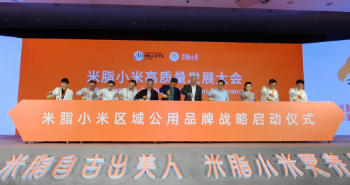 会上发布了《米脂小米产业高质量发展报告》和米脂小米区域公用品牌,其中,品牌标识以“小米美人”为主体元素,口号为“米脂自古出美人,米脂小米更养人”;与会嘉宾向米脂小米区域公用品牌首批使用企业授权颁证;帮扶榆林的中央部委、央企和相关县市区进行现场签约;中国工程院院士张新友等嘉宾作了交流发言。