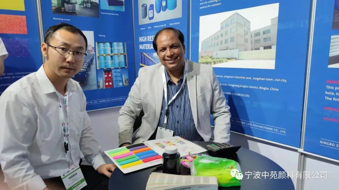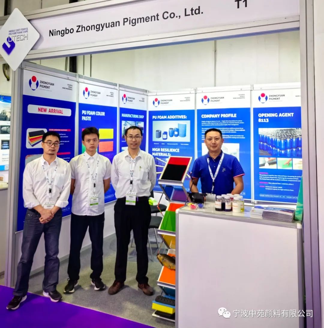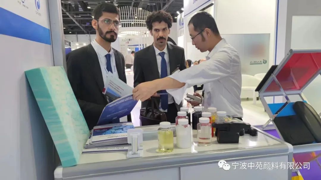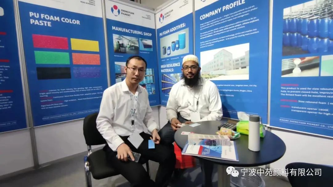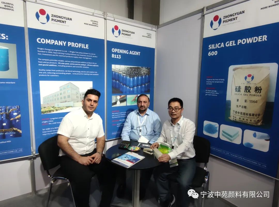 在这次展会上,我们重点展示了公司的各类产品,包括聚氨酯添加剂,色浆,胺,开孔剂,硅胶粉,抗黄剂等。
