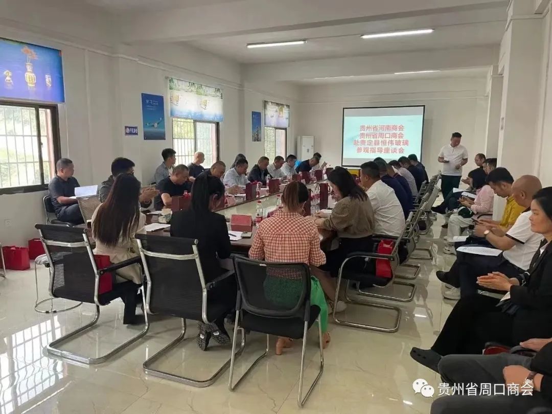 9月14日上午,贵州省周口商会会长刘晏山、副会长李海华、谢东、仲留意。贵州省河南商会会长王学哲、执行会长李敬山、李家强,秘书长侯排青等一行26人调研走访贵州省河南商会常务副会长单位——贵定县恒伟玻璃制品有限公司。