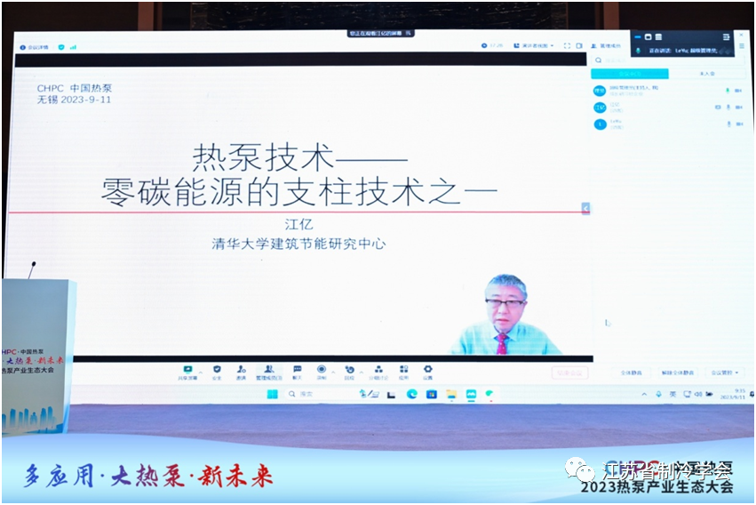 欧洲人文与科学院院士严晋跃教授作“能源系统转型中分布式资源优化协同”报告,国家节能中心副主任康艳兵教授作“积极发展热泵产业 助力实现双碳目标 ”报告。