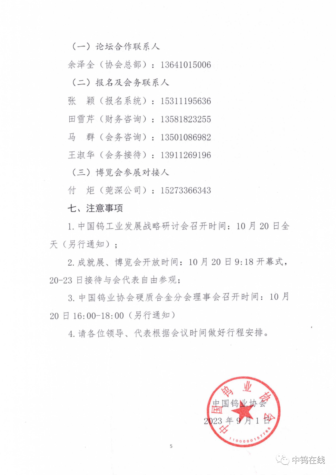 3.中国钨业协会硬质合金分会理事会召开时间:10月20日16:00-18:00(另行通知)