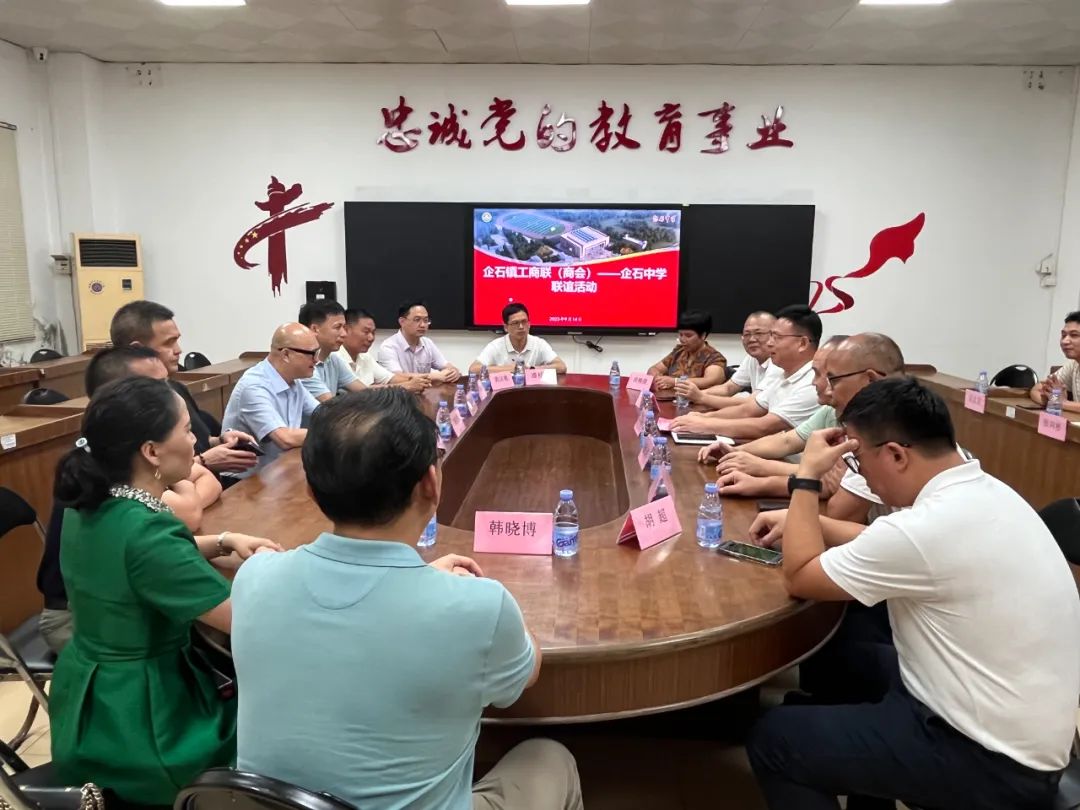 为更好地推进校企合作,助力企石镇教育事业发展。9月14日下午,企石镇工商联(商会)与企石中学举行联谊活动。企石镇工商联(商会)主席(会长)姚旭权,常务副主席姚文辉,监事姚国英,副主席姚志良、黄金福,副会长潘国标、吴单君、黄汉桃、韩晓博,执委龙珊妹,秘书长潘桂平参加了活动。