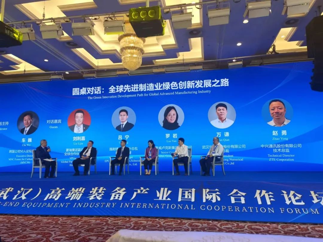 在圆桌对话环节,跨国公司50人论坛常务理事车巍、豪瑞集团副总裁级全球合作伙伴负责人刘利嘉、施耐德电气海外总包行业总经理吕宁、丹麦威卢克斯集团高级顾问罗岩、中兴通讯股份有限公司技术总监赵勇、武汉华中数控股份有限公司副总裁万谦围绕“全球先进制造业绿色创新发展之路”,分享各自领域绿色创新实践案例,分析面临的机遇与挑战,展望未来的发展前景,观点精彩纷呈。